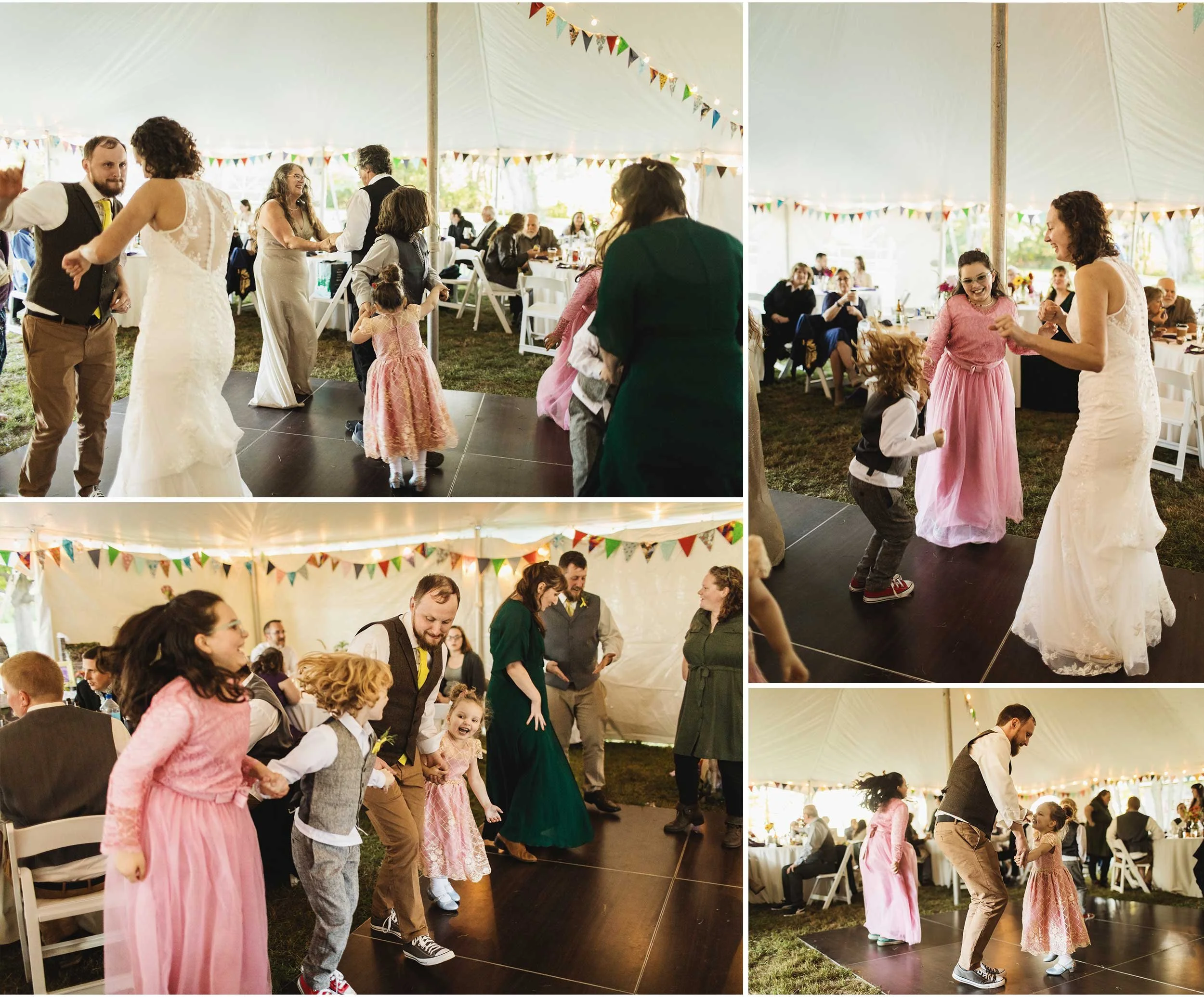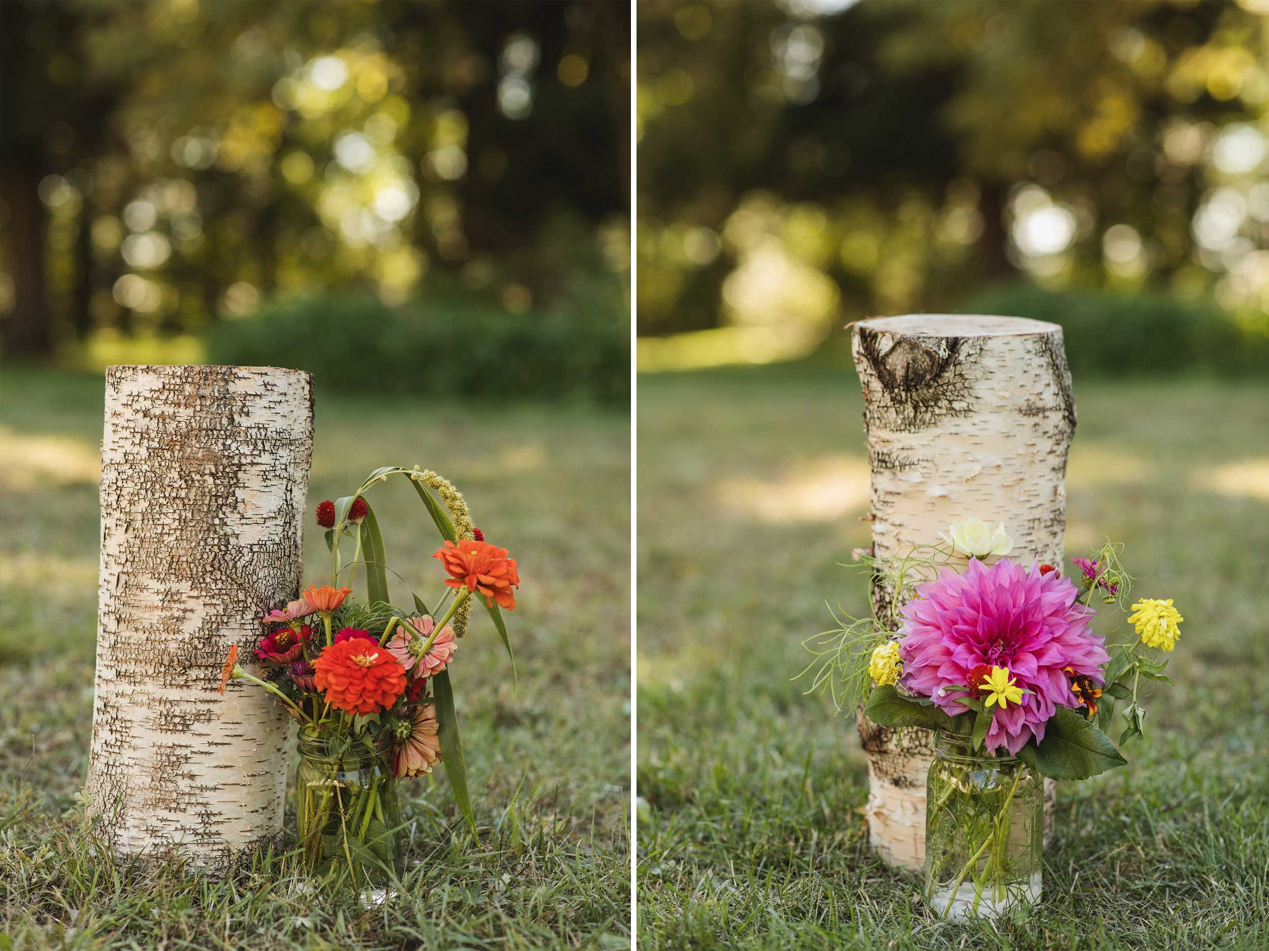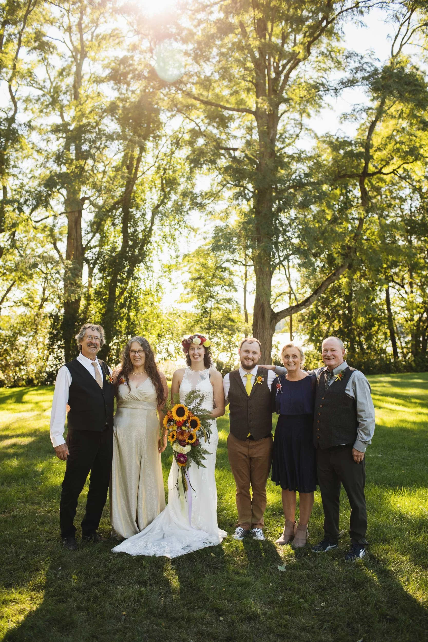 September came up quick and just before the wedding strong winds and rain threatened the wedding flowers! Louise put in so much effort growing her own flowers for the wedding as well as finding the most unique and beautiful contributions from Etsy vendors and friends/family. Louise and helpers stayed up late harvesting the beautiful blooms used for her flower crown, bouquet, table settings, and more. It was still windy the morning of the wedding, but the winds calmed just in time for a beautiful outdoor ceremony and reception.